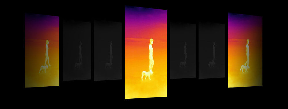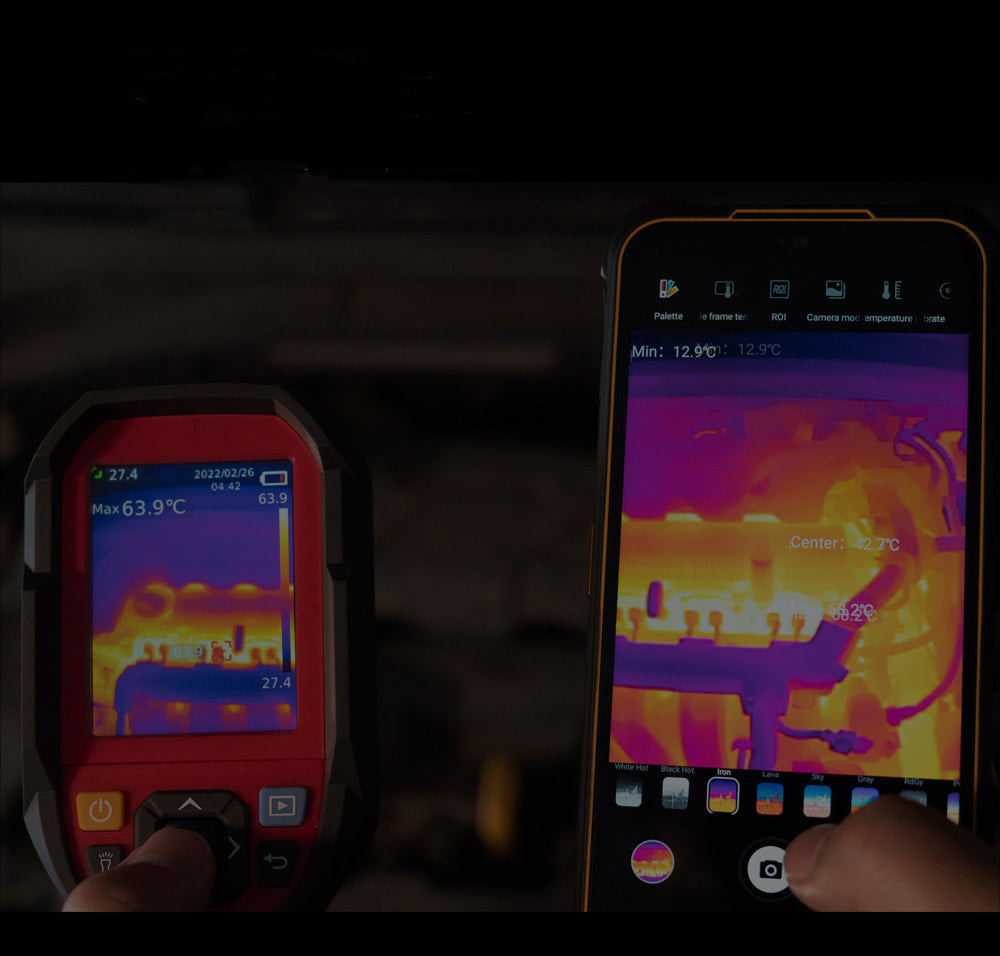 Различные цвета отображают самые горячие места, более тёмные оттенки отображают небольшие изменения температуры объекта.